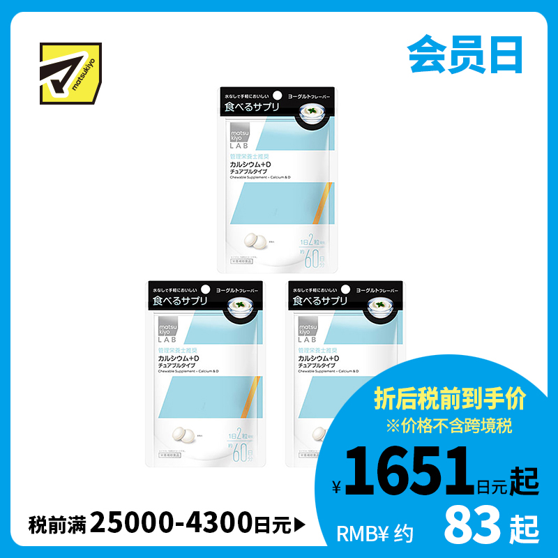 [商品名称]松本清 matsukiyo LAB 钙+d营养补充片 钙片 维生素D 120粒 3个装
