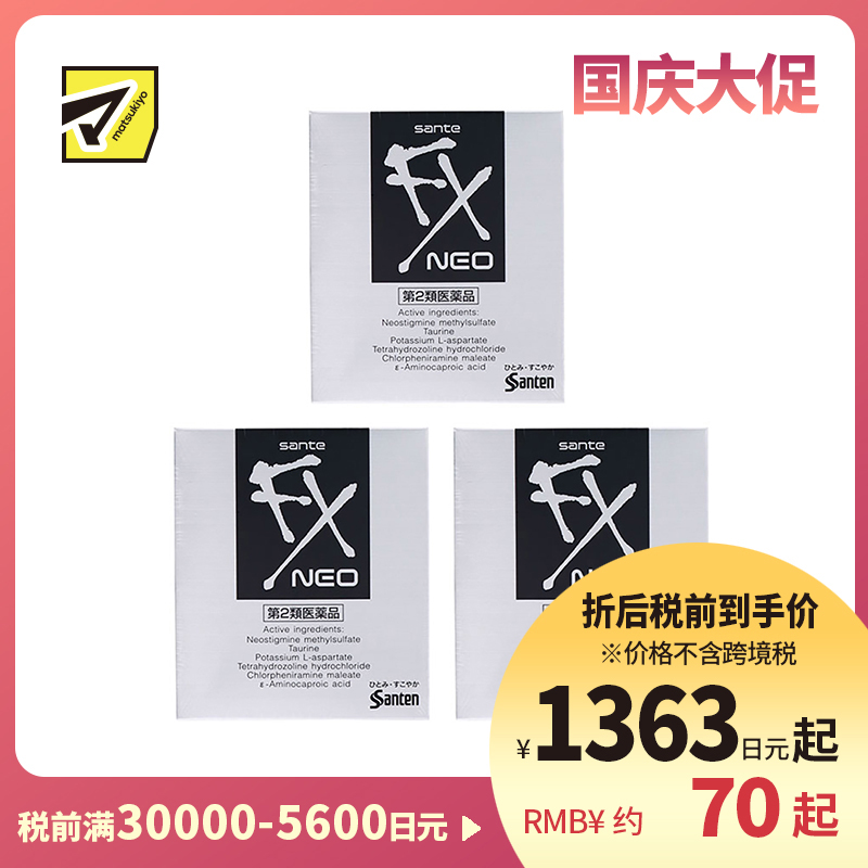[商品名称]参天制药 Sante参天FX银装眼药水滴眼液缓解视疲劳消炎干涩视力模糊 12ml×3个装