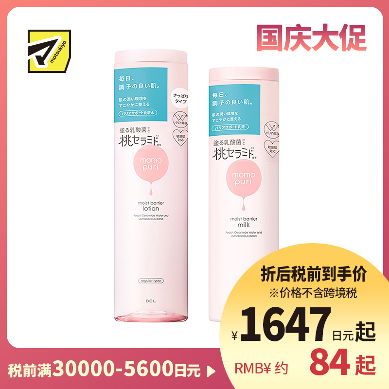 [套装内容]1,4515061012580 BCLmomopuri桃子乳酸菌保湿系列清爽型化妆水 护角质层敏感肌补水舒缓 200ml2,4515061012597 BCLmomopuri桃子乳酸菌保湿系列保湿乳液 护角质层敏感肌补水舒缓 150ml