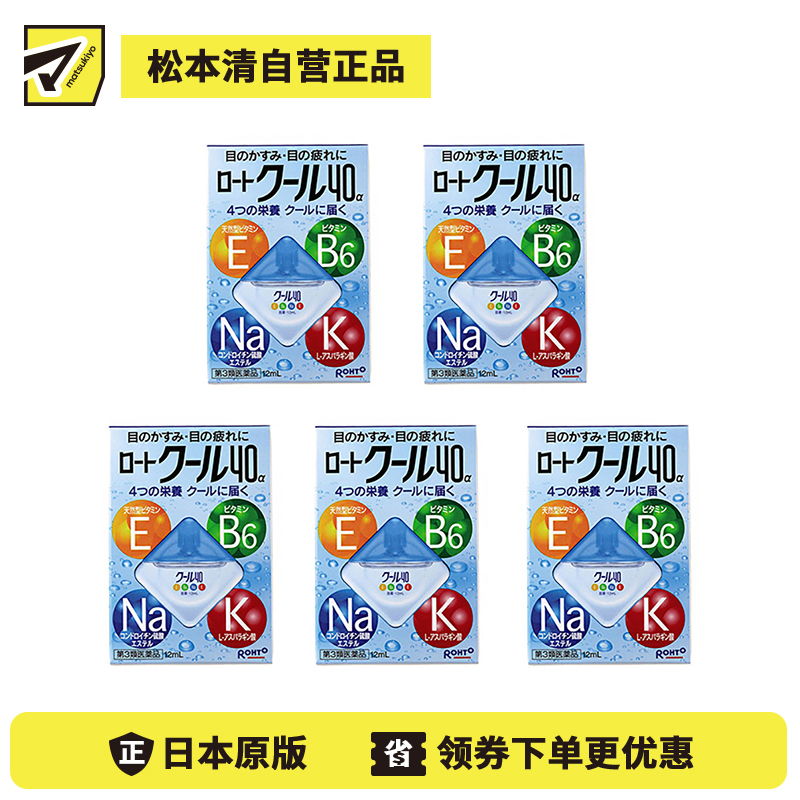 [商品名称]ROHTO乐敦Cool 40α维他命舒缓疲劳清凉眼药水 清凉度512ml 5个装【第3类医药品】