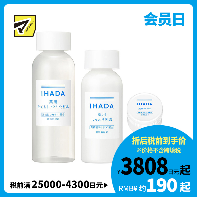 [套装内容]1,4909978204129 资生堂IHADA 修复舒缓湿敷补水保湿 化妆水超滋润型 180ml SHISEDO 改善泛红敏感肌2,4909978204143 资生堂IHADA 修复舒缓湿敷补水保湿 乳液滋润型 135ml SHISEDO 改善泛红敏感肌3,4909978204150 资生堂IHADA 修复舒缓湿敷补水保湿 凡士林面霜 20g SHISEDO 改善泛红敏感肌