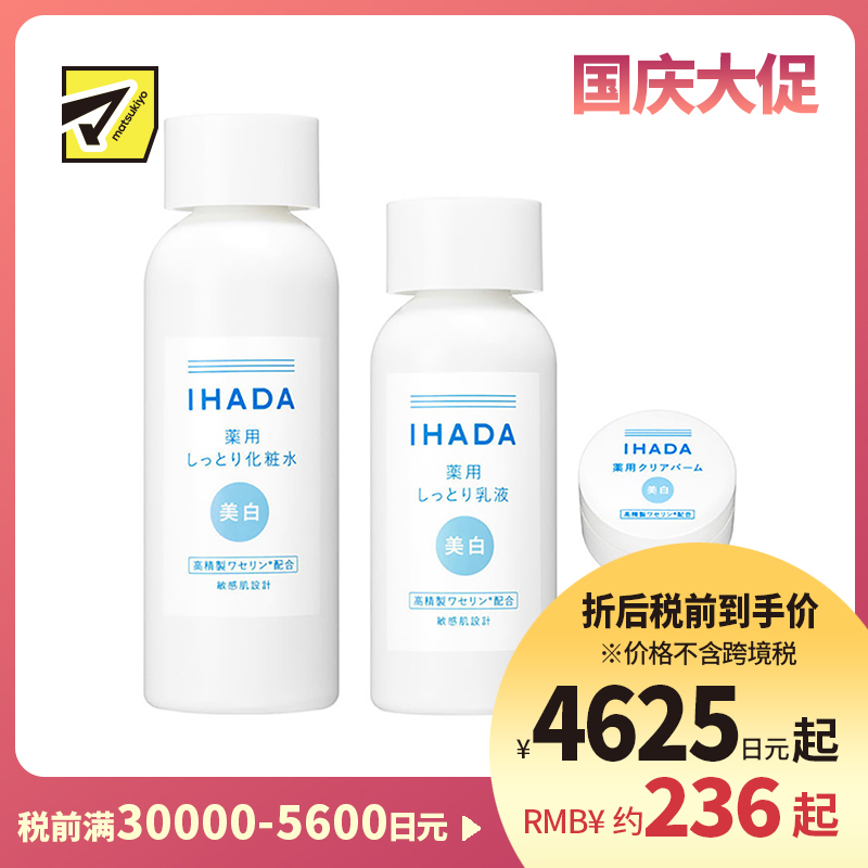 [套装内容]1,4909978204112 资生堂IHADA 敏感肌修复舒缓保湿 美白化妆水滋润型 180ml SHISEDO 预防痘痘肌2,4909978204136 资生堂IHADA 敏感肌修复舒缓保湿 美白乳液滋润型 135ml SHISEDO 预防痘痘肌3,4909978204167 资生堂IHADA 敏感肌修复舒缓保湿 凡士林美白面霜 18g SHISEDO 防止晒斑雀斑
