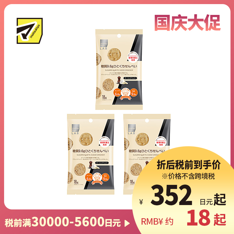 [商品名称]MatsukiyoLab松本清 丰富蛋白质低糖零食9.6g 芝士仙贝 蒜香胡椒味 18g 3个装 日本注册营养师推荐