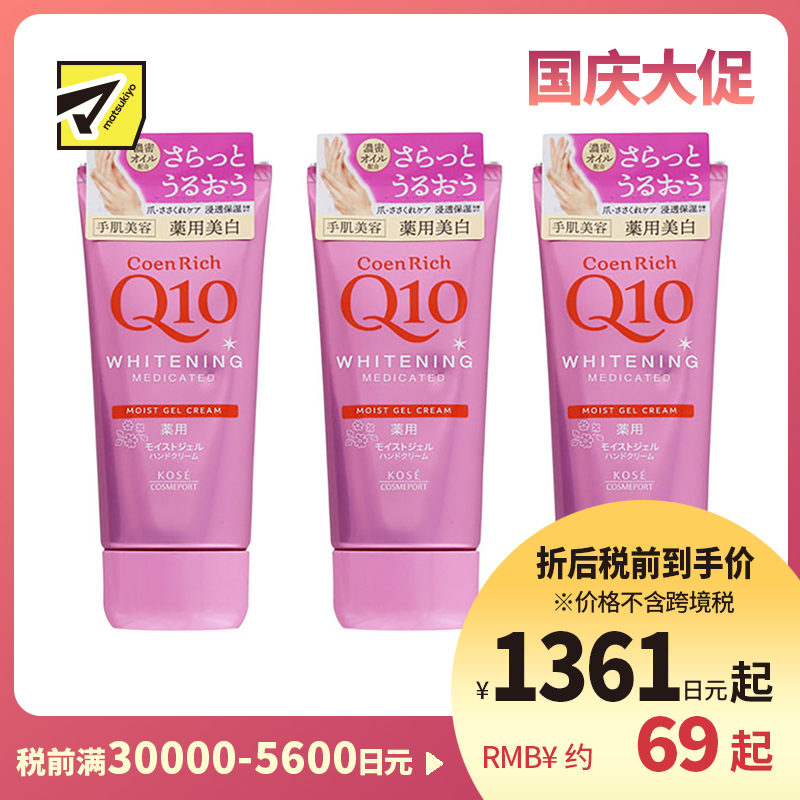 [商品名称]高丝CoenRich 清爽滋润保湿 Q10美白啫喱护手霜 80g 3个装 KOSE 美白预防色斑雀斑 护理指甲倒刺