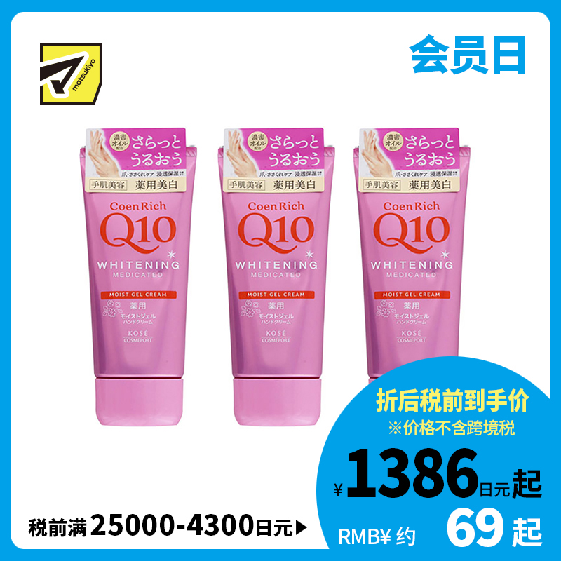 [商品名称]高丝CoenRich 清爽滋润保湿 Q10美白啫喱护手霜 80g 3个装 KOSE 美白预防色斑雀斑 护理指甲倒刺