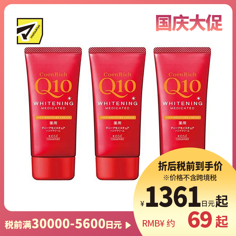 [商品名称]高丝CoenRich 浓润保湿锁水 Q10深层美白护手霜 80g 3个装 KOSE 抑制黑色素 预防色斑雀斑 护理指甲倒刺