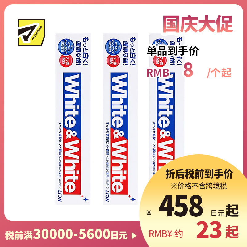 [商品名称]LION 狮王 WHITE&WHITE 特效去渍去黄去口臭 口气清新美白牙膏 薄荷香150g 3个装