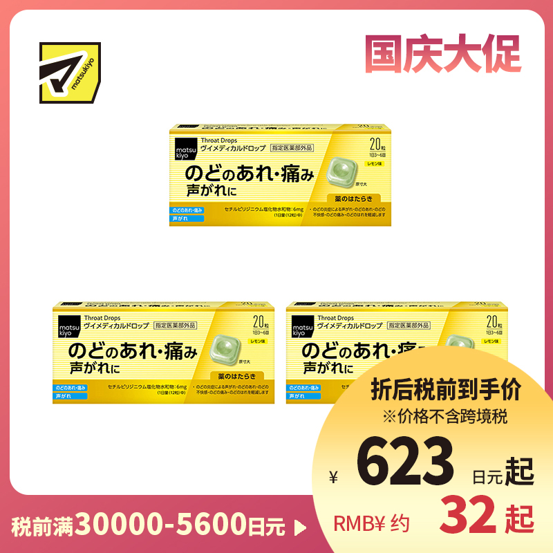 [商品名称]松本清matsukiyo 舒缓喉咙不适声音沙哑 杀菌消毒去口气润喉糖 柠檬味 20粒 3个装