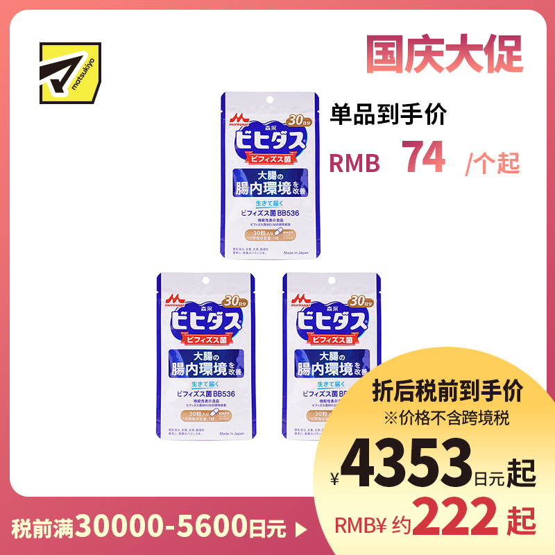 [商品名称]森永乳业 调理肠胃 改善大肠肠内环境 益生菌 双歧杆菌胶囊 30粒 3个装 改善成人肠道 养胃 BB536 植物成分硬胶囊