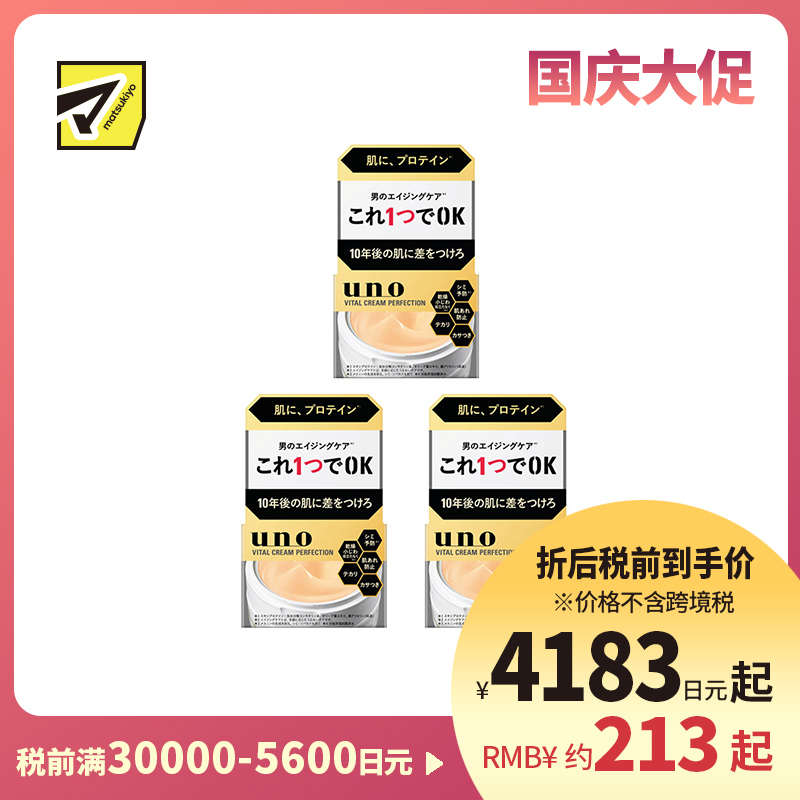 [商品名称] UNO吾诺 男士日常护肤 滋养保湿 初老肌护理 面霜 90g 3个装 一瓶五效 改善干燥粗糙松弛 清爽质地