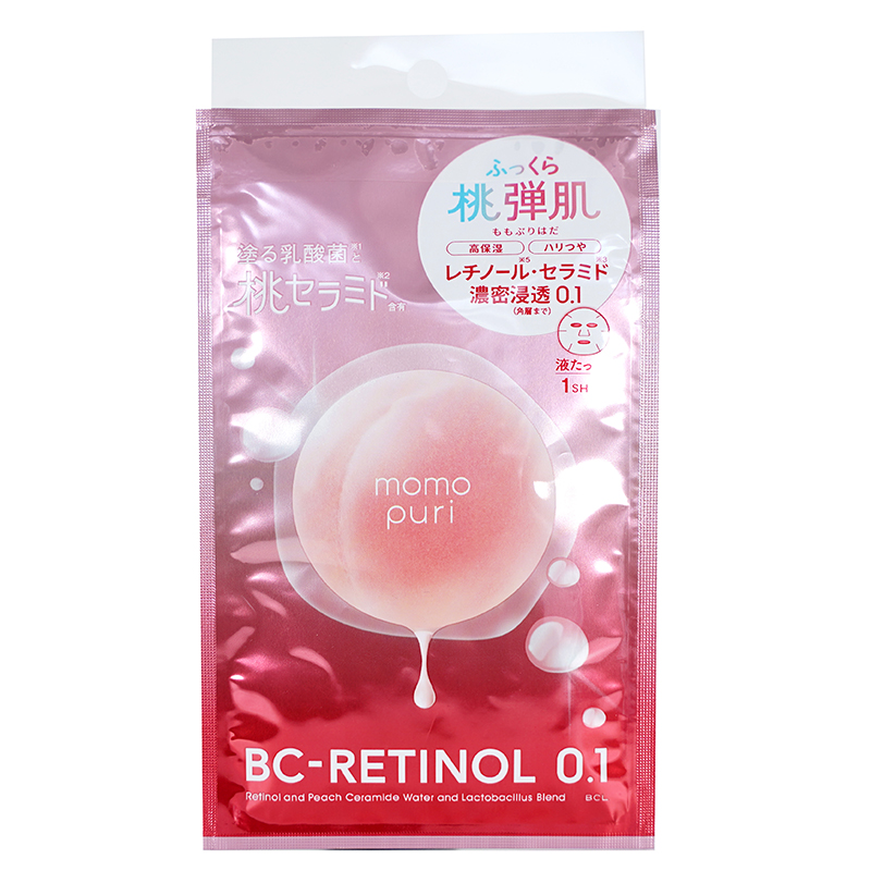 [商品名称] BCL momopuri 5合1晚间护理 细致肌理 提升饱满感 精华面膜 1片 神经酰胺 视黄醇 保湿屏障 稳定肌肤