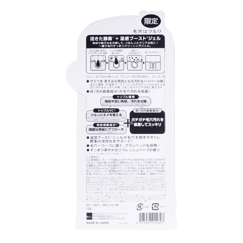[商品名称] BCL TSURURI 活性酵素 黑炭吸附 温感配方 毛孔分解 清洁凝胶 15g 搭配硅胶刷头 改善粗糙 角栓溶解