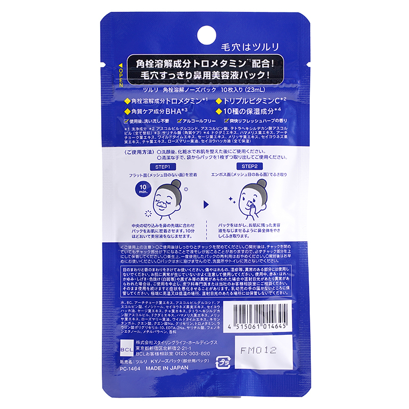 [商品名称] BCL BCL TSURURI 角栓溶解 一贴二擦 鼻部毛孔清洁 湿敷贴 10片 无酒精配方 水杨酸 调理角质