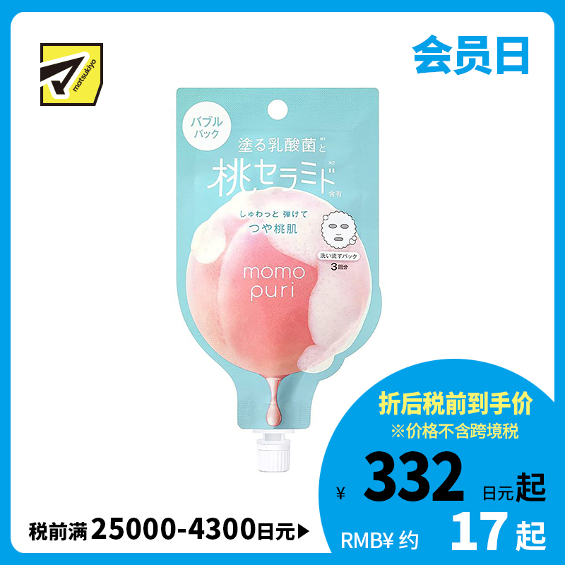 [商品名称]BCL momopuri 蜜桃神经酰胺乳酸菌 泡沫补水焕亮面膜 20g