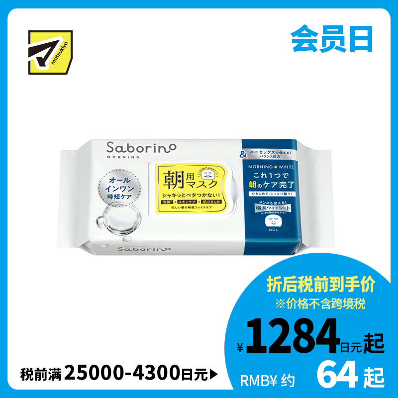 [商品名称]BCL Saborino 紧肤保湿早安面膜 男女兼用 滋润补水紧致肌肤 改善干燥细纹 32片