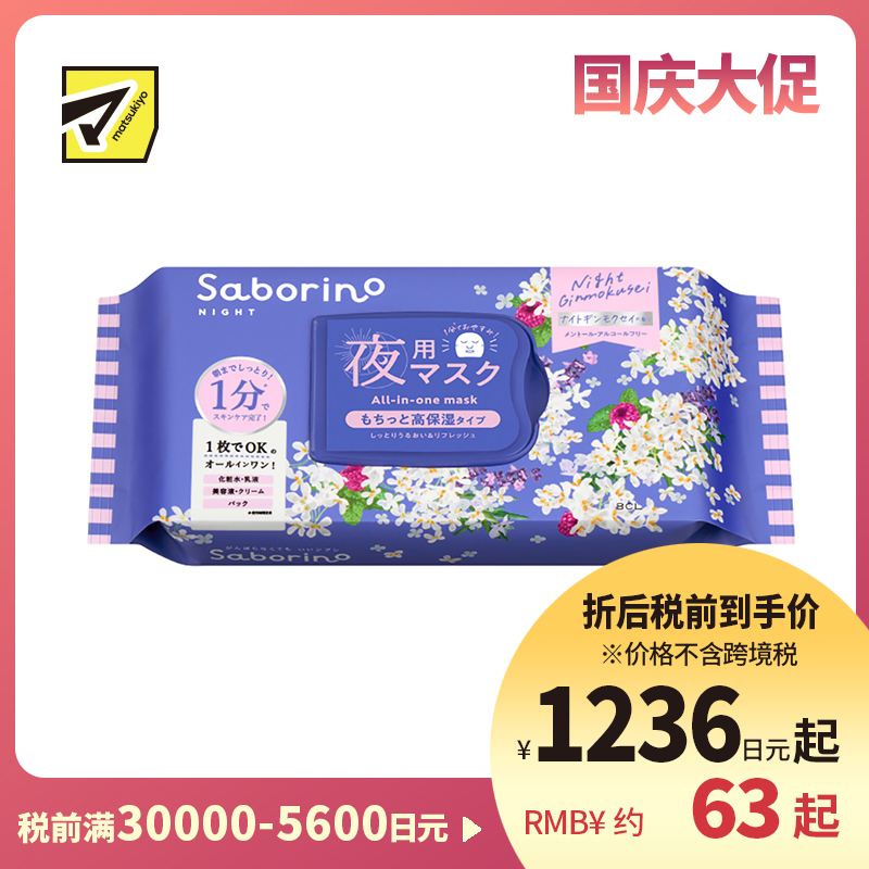 [商品名称]BCL Saborino 银木犀桂花维C晚安面膜 30片 化妆水乳液精华面霜面膜 高保湿 舒缓换季肌肤不稳 苹果酸 五合一 懒人免洗面膜
