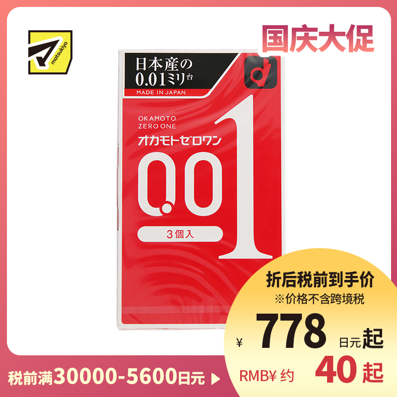 [商品名称]冈本 轻薄贴合 易传温感 0.01超薄避孕套 普通润滑 标准尺寸 3个 OKAMOTO 不易脱落 无乳胶味 无缝贴合 均一薄 安全套