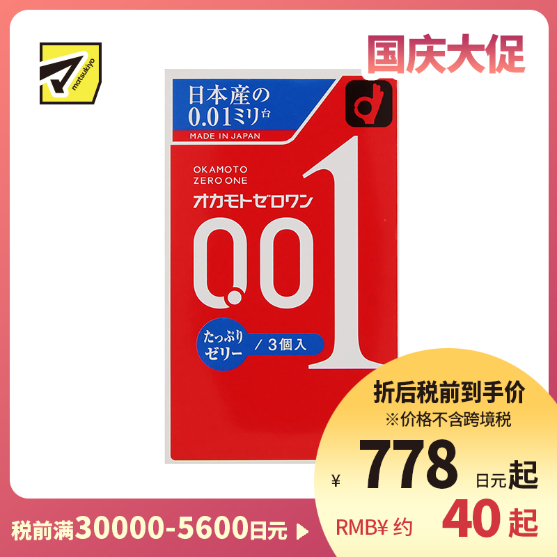 [商品名称]冈本 轻薄倍润贴合 易传温感 0.01超薄避孕套 超润滑 标准尺寸 3个 OKAMOTO 不易脱落 无乳胶味 无缝贴合 均一薄 安全套
