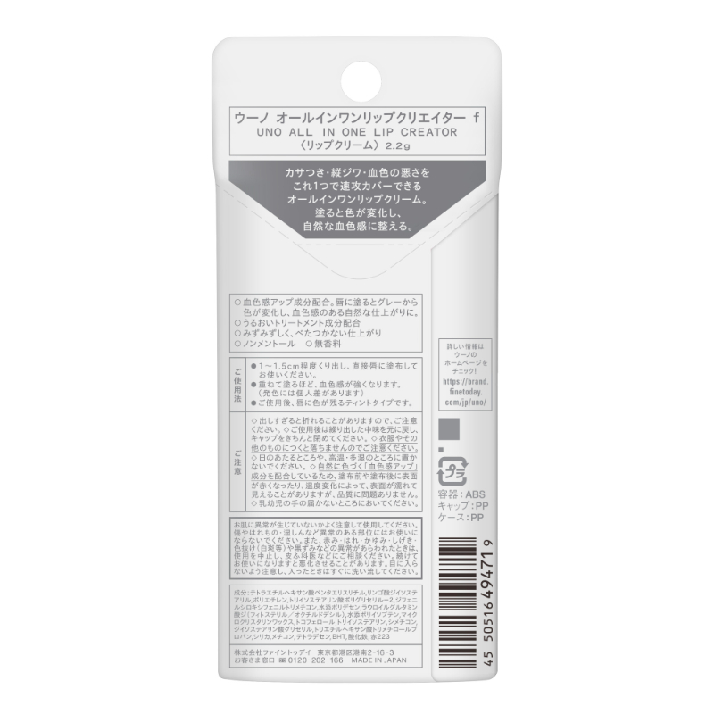[商品名称] UNO吾诺 改善唇色 自然变色 覆盖干裂 男士润唇膏 2.2g 健康血色感 简约设计 无香无刺激型