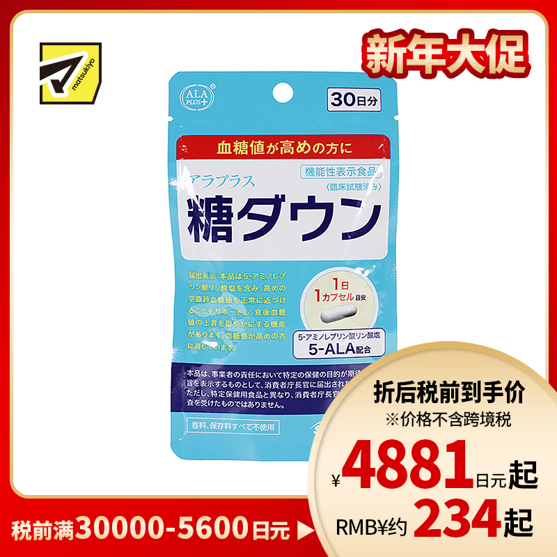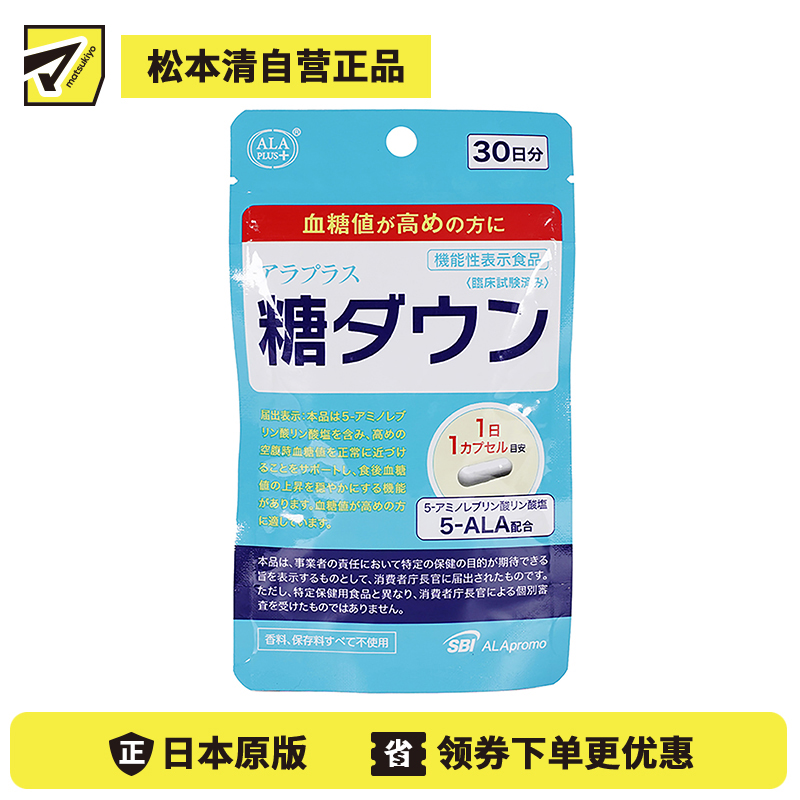 [商品介绍]本品对空腹时和餐后的血糖值采取双重对策。含有5-氨基左旋丙氨酸磷酸盐,可帮助将高空腹时的血糖值趋向正常,并具有缓解餐后血糖升高的功能。适用于血糖值较高的人群,推荐给关心改善血糖值的人群。本产品不含香料、防腐剂、经过临床试验验证。每天只需服用一粒药即可持续补充血糖水平。