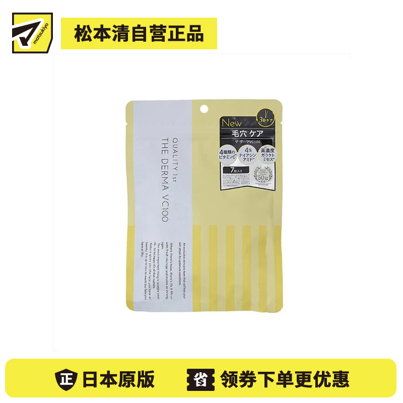 [商品名称] QUALITY FIRST VC毛孔护理 烟酰胺美白 VC100面膜 7片 THE DERMA 4种维生素C+4%烟酰胺+高浓度半乳糖酵母