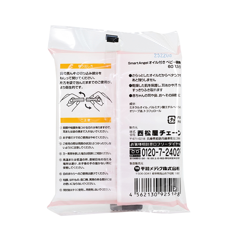 [商品名称] 西松屋 婴幼儿护理 清理耳朵鼻腔污垢 棉头小巧 婴儿棉棒 60支 Smart Angel 独立包装 含保湿矿物油