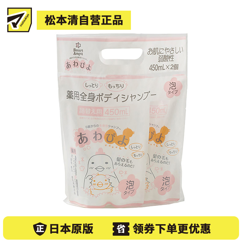 [商品名称] 西松屋SmartAngel婴儿全身可用清洁清爽沐浴露洗发水 替换装450ml×2袋