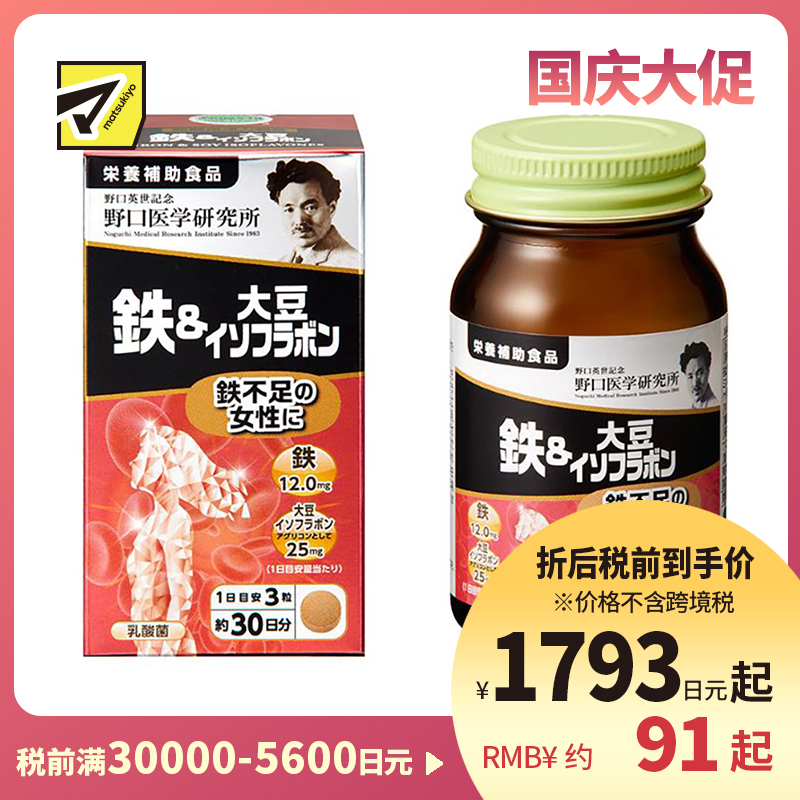 [商品名称]野口医学研究所 新版 铁和大豆异黄酮胶囊 成年女性补充雌激素 90粒