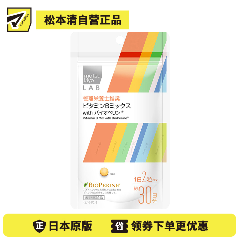 [商品名称]松本清 matsukiyo LAB 混合维生素B with 胡椒碱 营养补充片 60粒