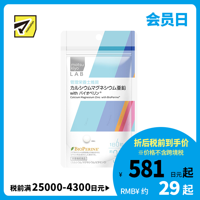 [商品名称]2号仓-松本清 matsukiyo LAB 钙镁锌营养补充片 钙片 with 胡椒碱