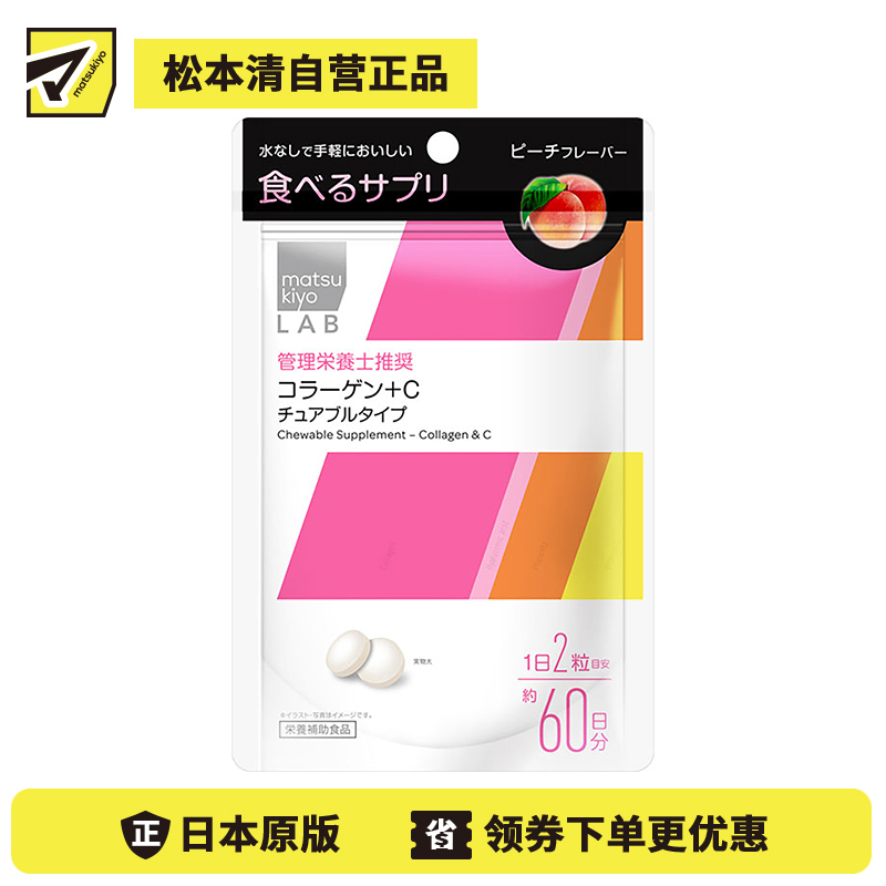 [商品名称]松本清 matsukiyo LAB 胶原蛋白+维生素C 咀嚼片 营养补充片 桃子味 120粒