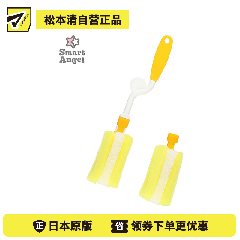 [商品名称]西松屋 轻松清除奶瓶内壁污垢 婴儿奶瓶用海绵刷+海绵替换头 黄色 SmartAngel 无死角刷净顽固奶渍
