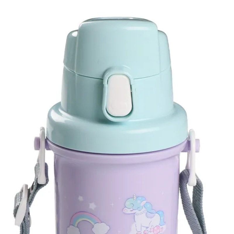 [商品介绍] 杯身印有可爱独角兽图案,颜色鲜明又吸睛,不仅是喝水工具,更是孩子出门的好伙伴。600ml容量设计,满足外出、上学或运动时的补水需求。抗菌材质杯身,搭配一键弹盖设计,孩子小手也能轻松操作,喝水不再需要帮忙。宽口结构既方便直接饮用,也方便爸妈清洗。附带肩背带,宝宝背着走哪都方便,不易丢失。耐热达140℃、耐冷至-30℃,更适合四季使用,让孩子爱上喝水,从每天的小细节开始。