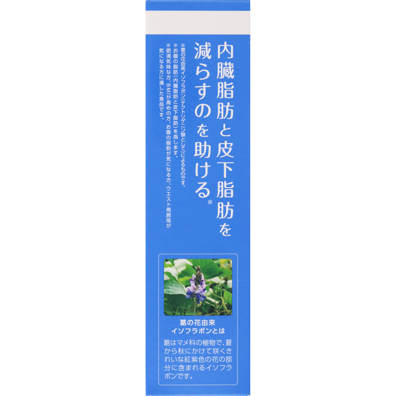 [商品介绍] 一款含有葛花来源异黄酮的营养片,适合在意体重变化、腹部脂肪及腰围情况时作为日常饮食管理的一部分。营养片中所含的葛花来源异黄酮被报告具有帮助减少内脏脂肪与皮下脂肪,并辅助改善腰围数值的作用,适用于自觉偏胖、BMI数值偏高,或对腹部脂肪、腰围变化较为在意的人群。每日按建议量摄取,可在保持日常饮食均衡的前提下,作为生活方式管理中的一种温和选择。本品并非特定保健用食品,请在合理饮食与生活习惯的基础上使用。