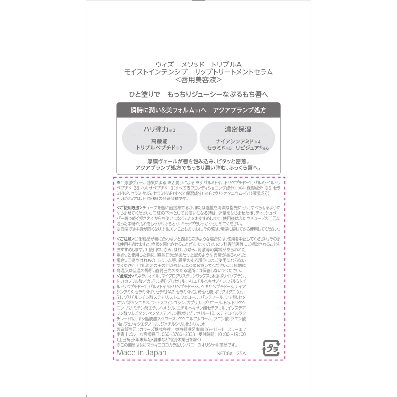 [商品名称] 松本清W/M AAA 改善唇部干纹 修护干燥暗哑 持久保湿 唇部精华 8g 三重胜肽 提升饱满度 提亮唇色 烟酰胺