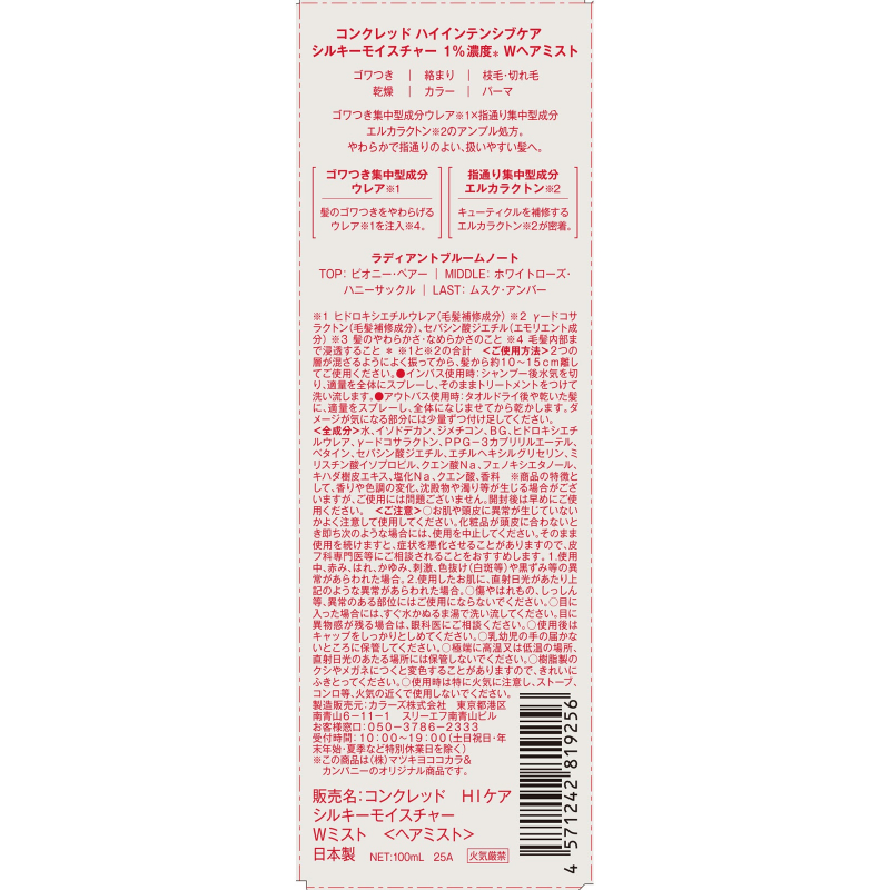 [商品名称] 松本清matsukiyo CONCRED 高强度护理 改善干涩毛躁打结 柔顺滋润 护发喷雾 100ml 不黏腻 顺滑发丝 双层质感修护
