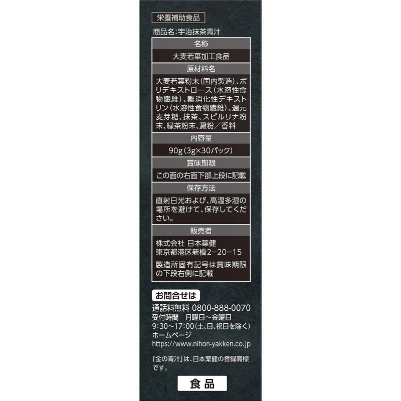 [商品名称] 日本药健 宇治抹茶风味 高纤配方 大麦若叶青汁粉 3g×30包 金之青汁 独立包装 清爽不腻口