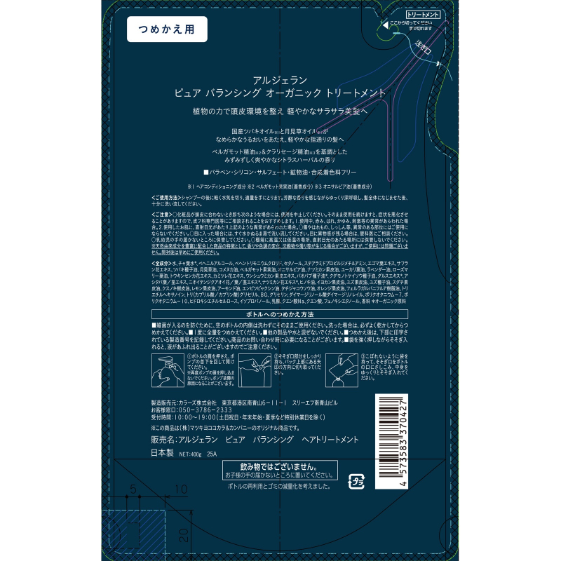 [商品名称] 松本清ARGELAN 有机护理 双重植物精华 滋养顺滑 护发素补充装 450g 柑橘草本香 替换装 轻盈质地 清爽舒缓 温和配方