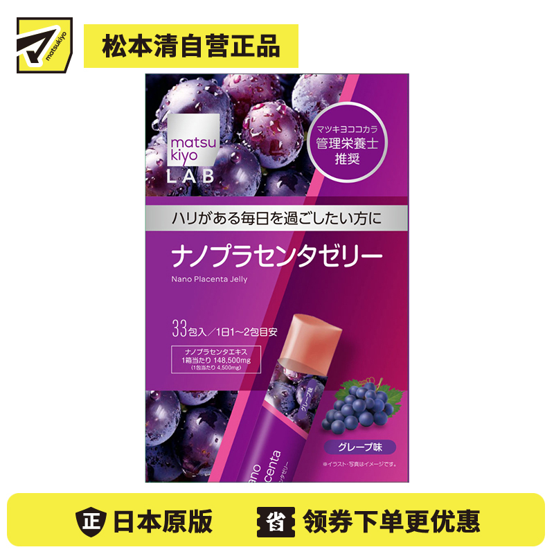 [商品名称] 松本清 matsukiyo LAB 弹润呵护 便携美味 胶原蛋白 胎盘精华 果冻 33包 葡萄味 玻尿酸 三重美容成分 纳米胶囊技术 独立包装