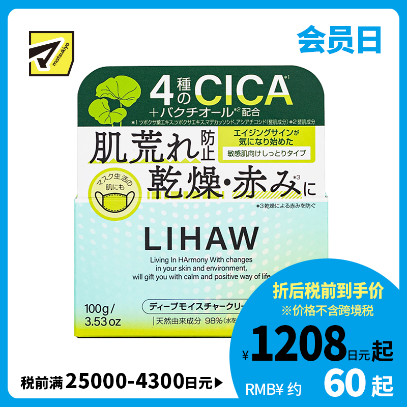 [商品名称]利尻昆布 LIHAW丽花 积雪草深层保湿霜 舒缓修护肌肤 预防皮肤干燥 敏感肌适用 100g