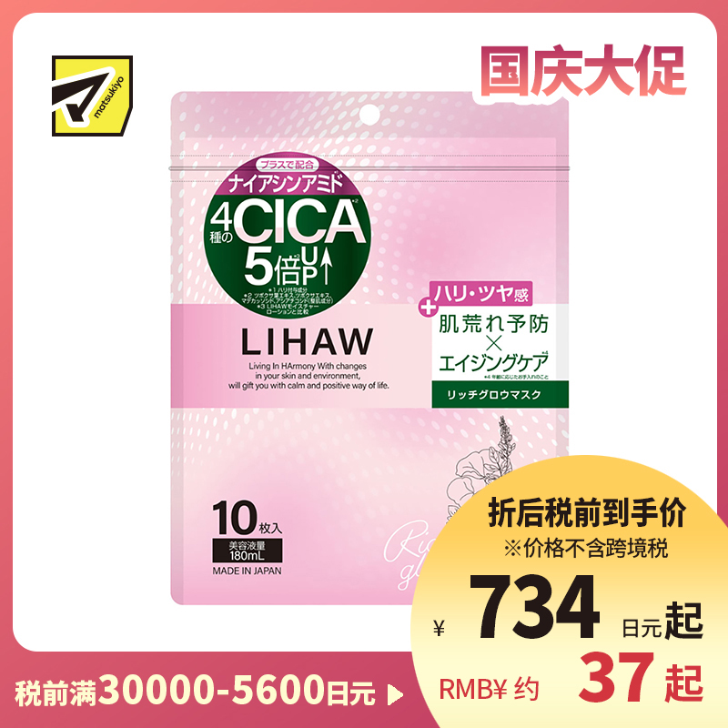 [商品名称]利尻昆布 LIHAW丽花 积雪草丰盈焕彩面膜 保湿补水 紧致肌肤恢复弹性 10片