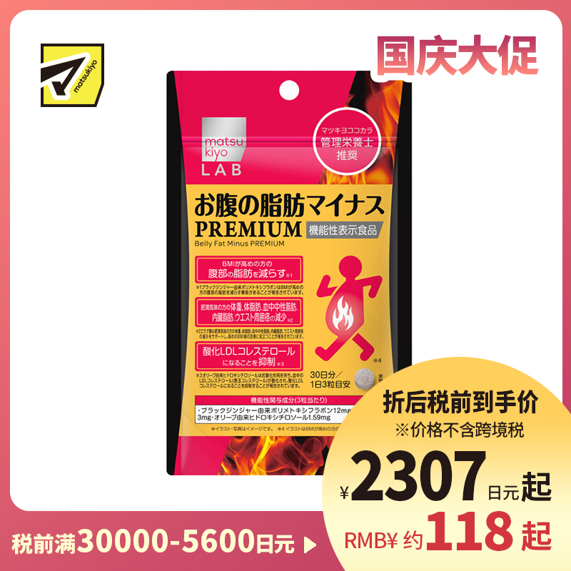 [商品名称] 松本清matsukiyo LAB 体脂管理 减轻腹部脂肪 加强配方 小腹丸 PREMIUM版 90粒 机能性表示食品 黑姜提取物 BMI管理