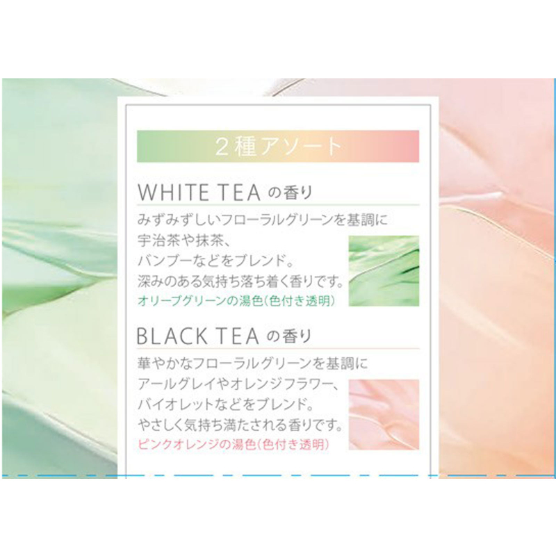 [商品介绍] 采用被称为「美人汤」的弱碱性pH9.5温泉灵感配方,通过温和的碱性浴质帮助去除多余皮脂和老废角质,让肌肤洗后更加细滑柔嫩。每包含有神经酰胺、玫瑰果油、积雪草提取物及米糠精华,泡澡的同时深层滋润肌肤,缓解干燥带来的不适感。套装内含两种香型:白茶香融合宇治茶、抹茶与竹香,散发出沉静自然的绿茶香气,配以橄榄绿澄澈浴色,为你带来安心沉稳的沐浴时光;而红茶香则调和佛手柑、橙花与紫罗兰等清甜花香,搭配粉嫩通透的浴色,让你在温柔香气中释放压力、恢复平静。6包组合设计(2种各3包),让你能依照当天的心情自由选择,打造属于自己的放松时刻与肌肤呵护体验。