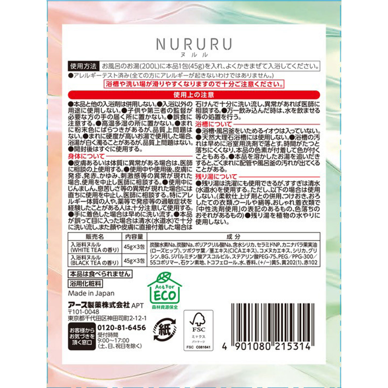 [商品名称] 安速 碱性温泉 软化角质 多重保湿 入浴剂 白茶香&红茶香组合装 45g×6包 神经酰胺 滋润肌肤