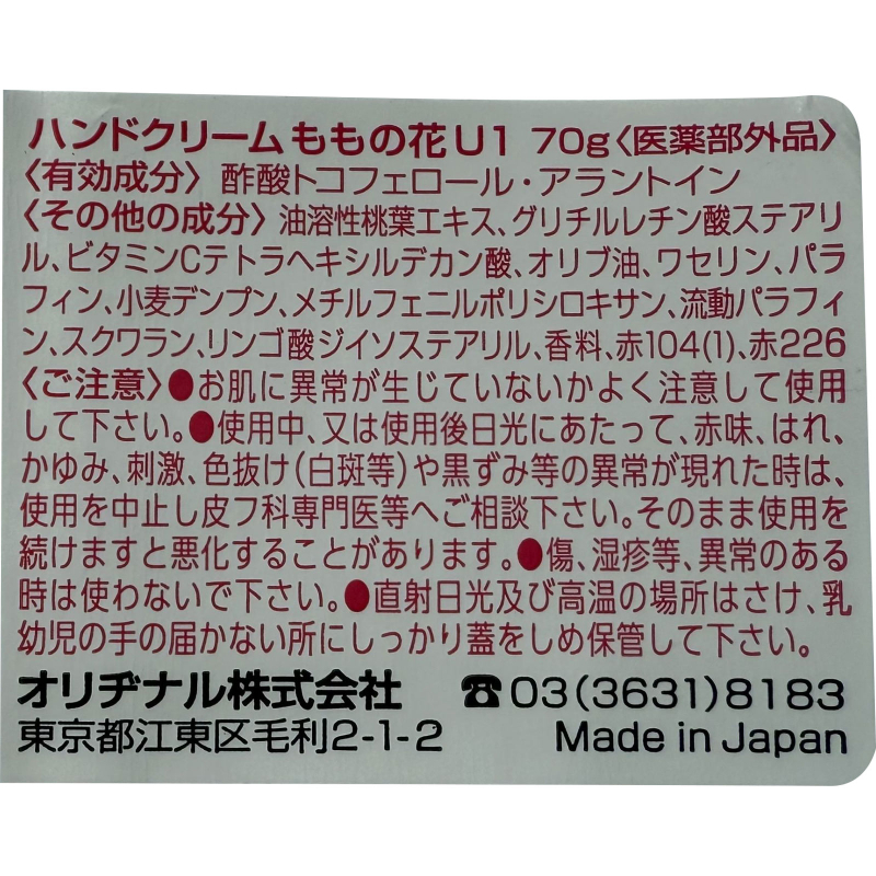 [商品名称] ORIGINAL桃花 针对干裂红痒 油性滋润 保湿修护 护手霜 70g 复合修护成分添加 桃叶精华 缓解干燥