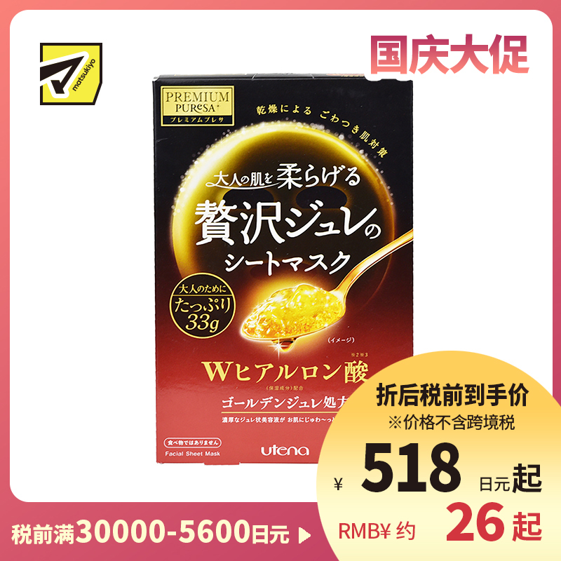 [商品名称]utena佑天兰超浓厚玻尿酸保湿美肌面膜 果冻面膜 3片