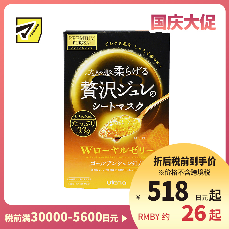 [商品名称]utena佑天兰蜂皇浆补水抗衰黄金果冻面膜3片