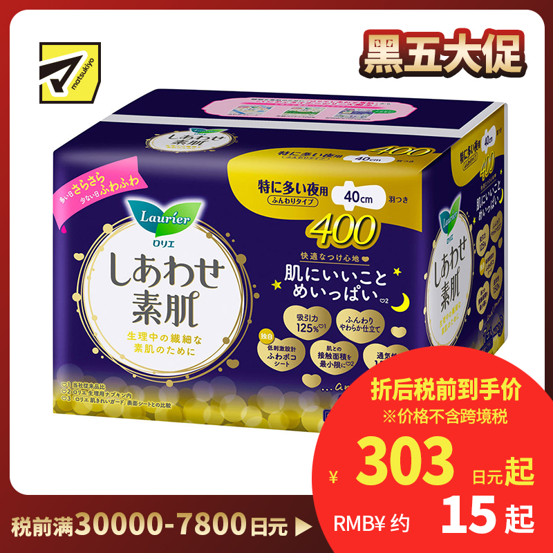 [商品名称] KAO花王Laurier乐而雅 F系列敏感肌超量夜用卫生巾 有护翼 40cm 7片
