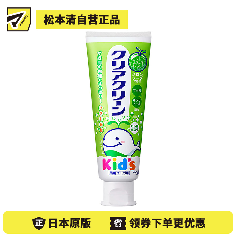 [商品名称]Kao花王 clear clean儿童牙膏 幼儿清洁防蛀护齿防龋齿木糖醇固齿 哈密瓜味 70g
