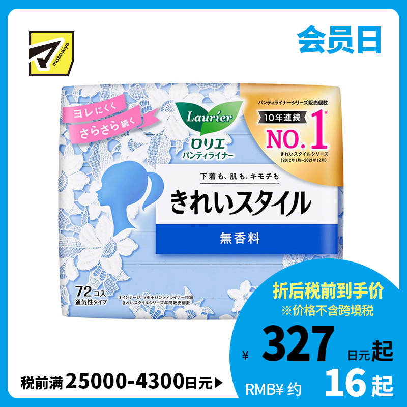 [商品名称]KAO花王Laurier乐而雅 无压力超薄轻透卫生巾护垫 无护翼 无香 72片
